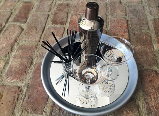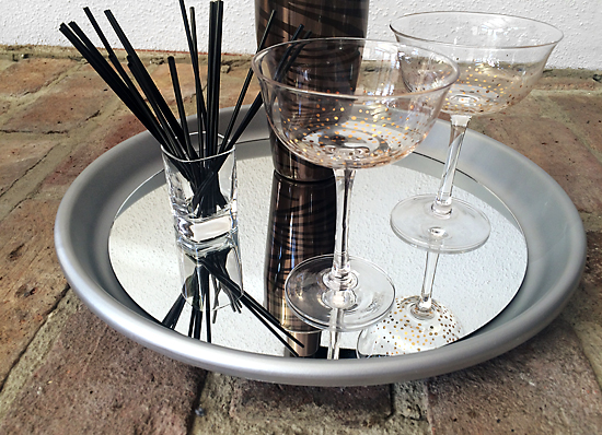 This step is not necessary, but to prevent natural 'wear and tear,' and give the tray an overall shiny finish and seal, you can spray a clear top coat over the entire tray before placing the circle mirror in the center.